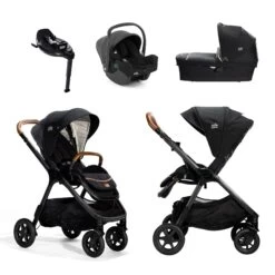 Joie Finiti Signature Pushchair Encore Bundle – Eclipse is suitable from birth up to 22 kg. The Joie Finiti Pushchair features a a super compact design with elegant matt aluminum chassis and flex comfort reversible seat unit. This lightweight city stroller is a part of Joie Signature collection characterized by rich woven fabric and elegant leatherette detailing. It comes with innovative all-wheel suspension and all-terrain puncture proof tires with front swivel system. Quick action parking brake will keep the stroller in place on slopes. The Joie Finiti can be folded quickly by using just one hand to a compact self standing size, ideal for transport with a integrated carry strap.