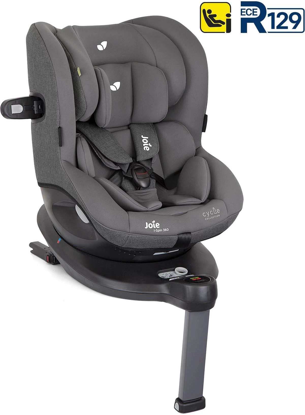 Meet Joie i-Spin 360 Group 0+/1 Car Seat – Cycle Shell Grey, a 360º pivoting protector that spins rearward, forward and everywhere in between! Now featuring i-Size security, plus Guard Surround Safety™ and Smart Ride™ lock off for built in safety and peace of mind.