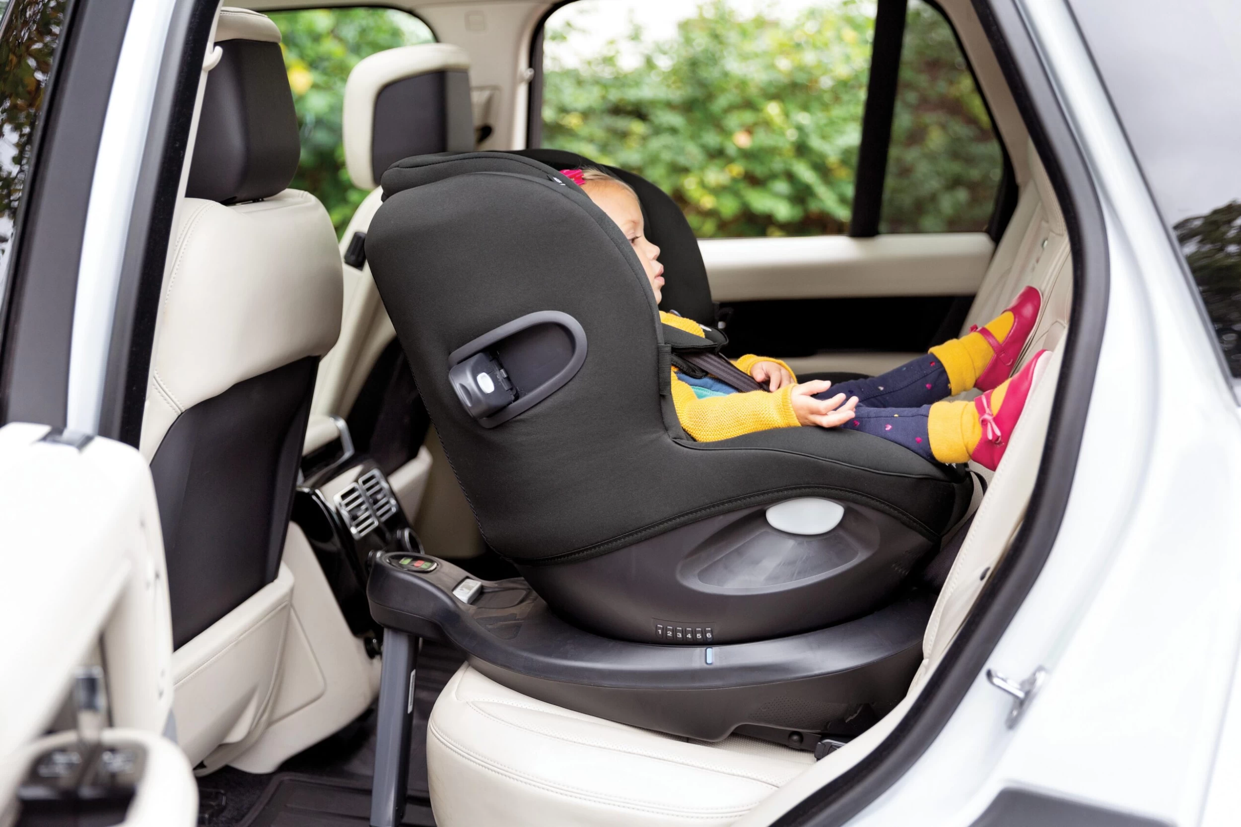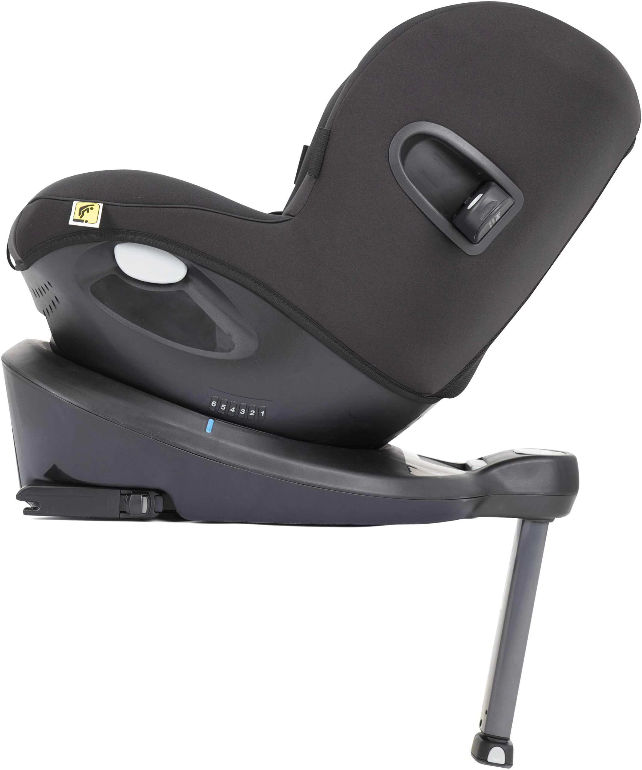 90º Simple Swivel™ – Positioned where you naturally reach, the one-hand Simple Swivel™ creates a silky smooth 90º spin that turns your kiddo towards you during buckle-up and back again to a safely rearward ride.