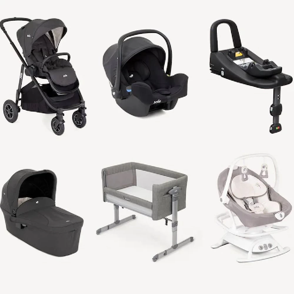 The Joie Newborn Essentials Bundle Shale has everything you need to get you ready for your little one’s arrival, including our Versatrax pram, i-Snug 2 infant car seat, Ramble XL carry cot, i-Base Advance, Roomie Glide bedside crib, and Sansa 2in1 swing.